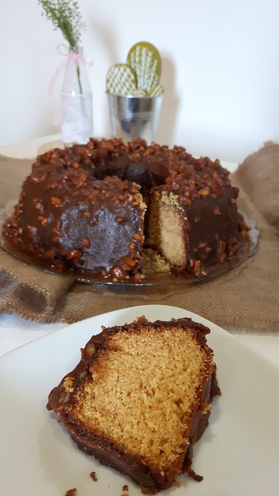 destas primeiras tentativas continuei a tentar porque acho deliciosa a combinação do bolo com a cobertura de caramelo e nozes.